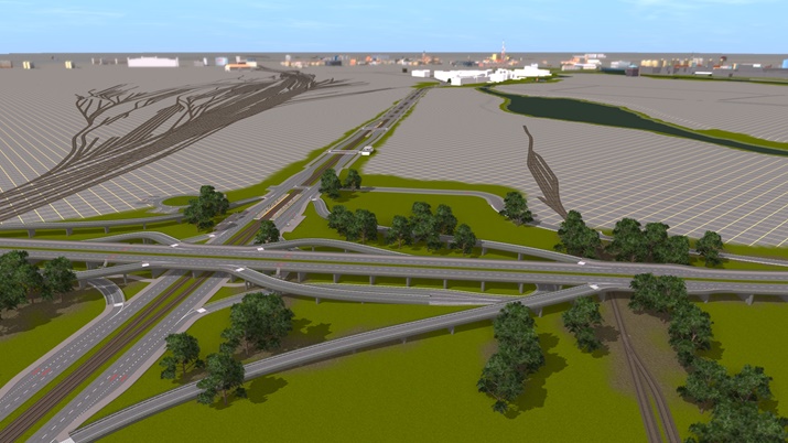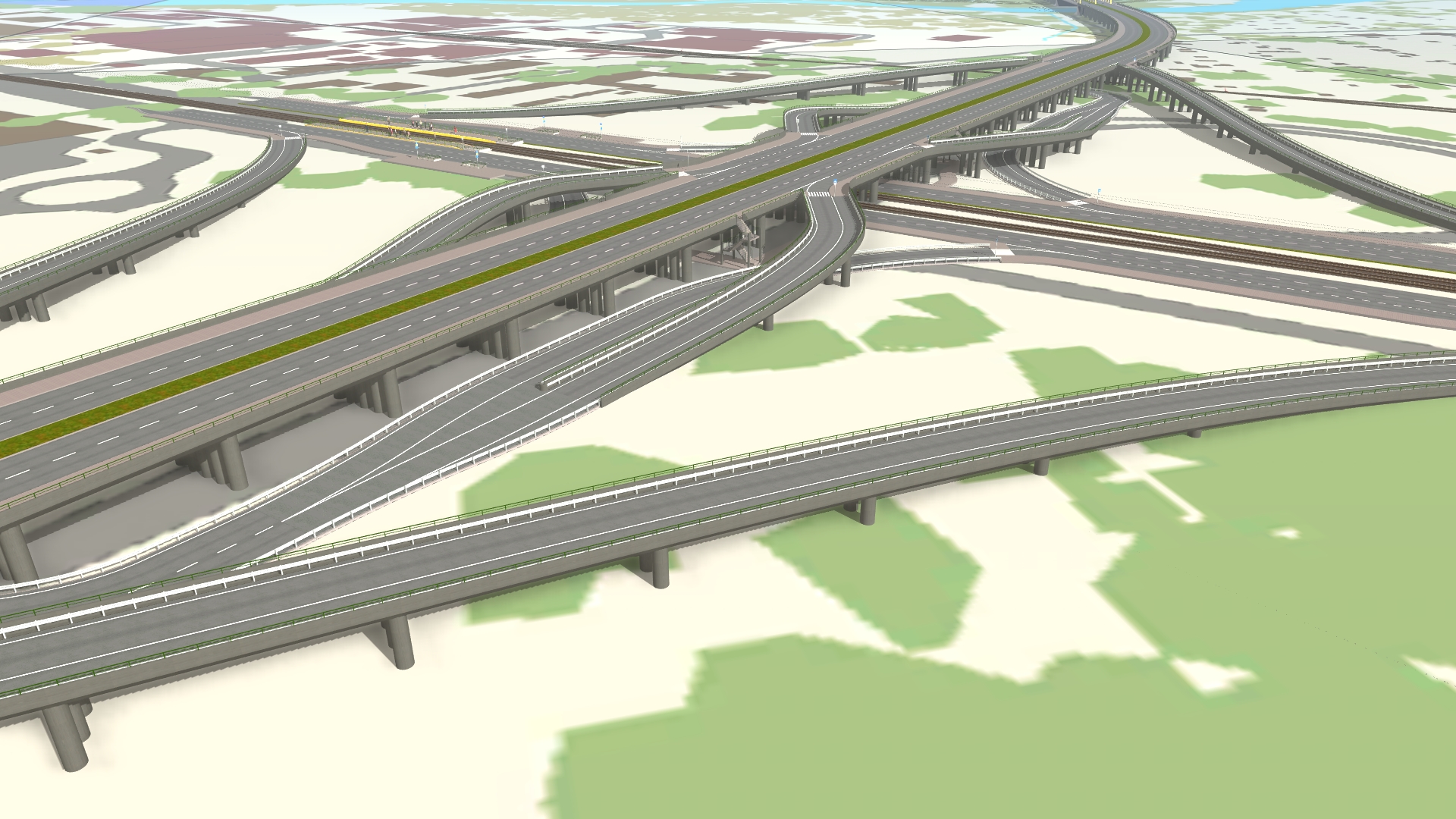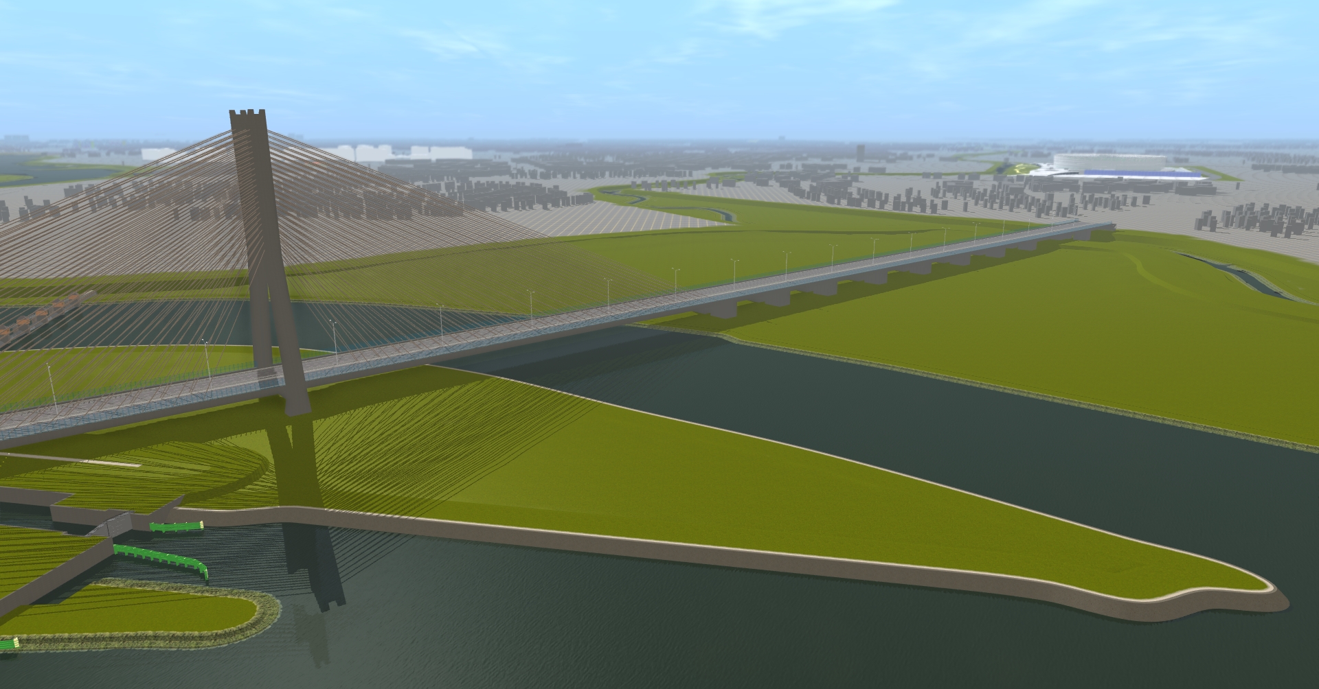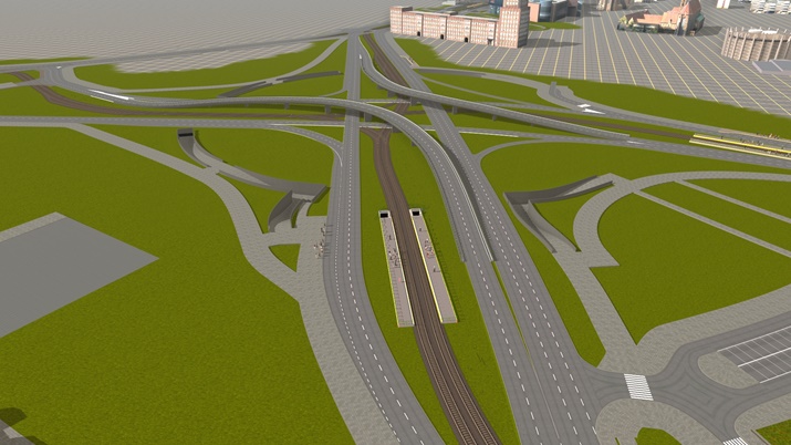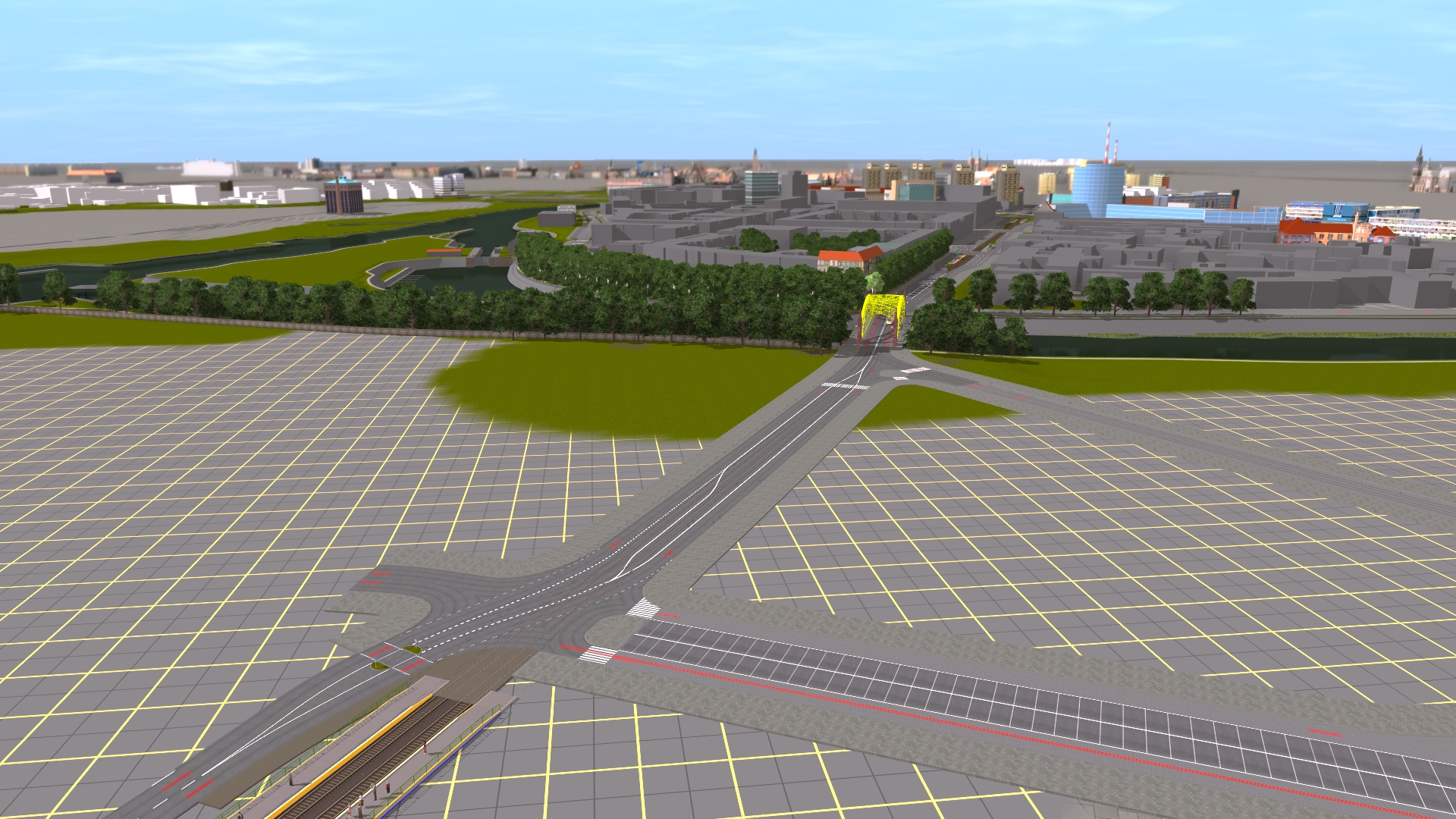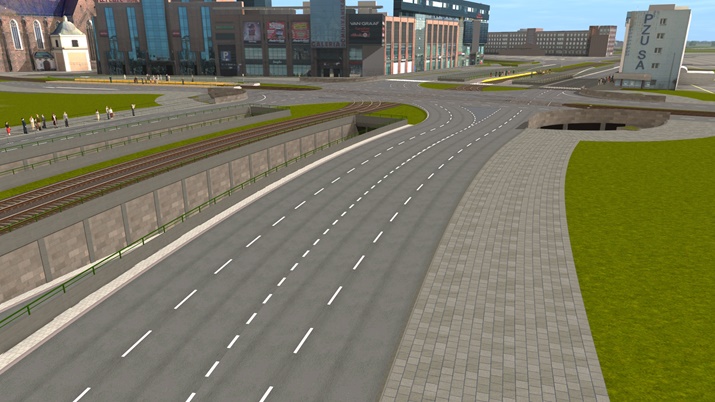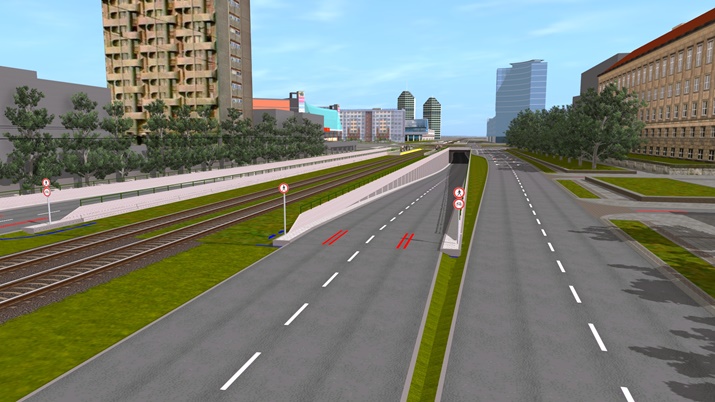 Ein sehr wichtiges Stadium ist erreicht. Es sind inzwischen alle 5 Breslauer Flüsse nachgebildet, alle Straßenbrücken über die Oder und die Ohle sowie alle Eisenbahnbrücken fertiggestellt. Alle Gebäude der Strecke stehen schon, 95 % davon müssen noch überarbeitet und texturiert werden. Nun beginne ich mit der Verlegung der Straßen, zuerst kommen die mit der Straßenbahn und Buslinien dran. Zugleich arbeite ich wieder am Breslauer Hauptbahnhof.