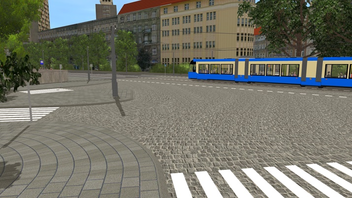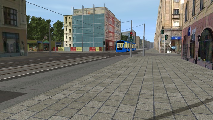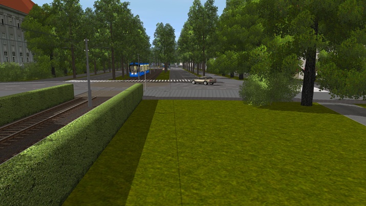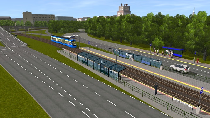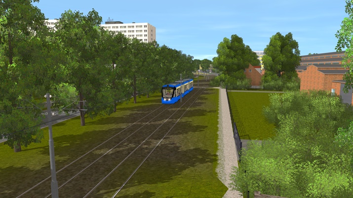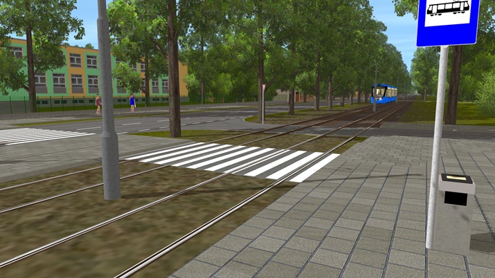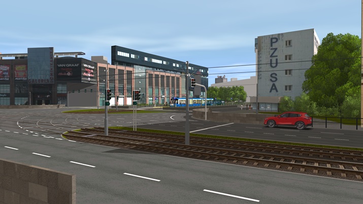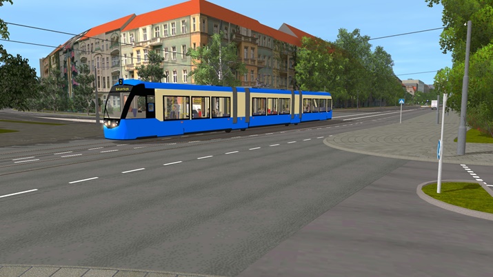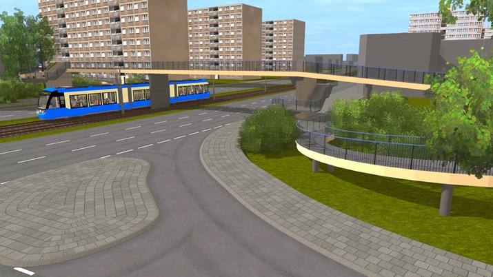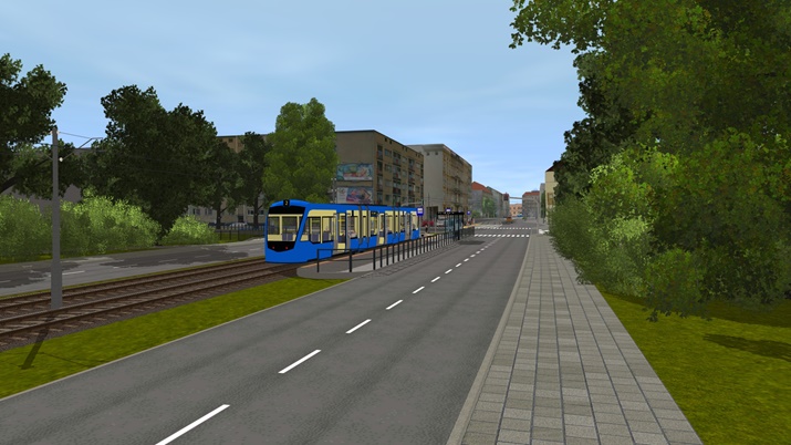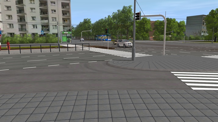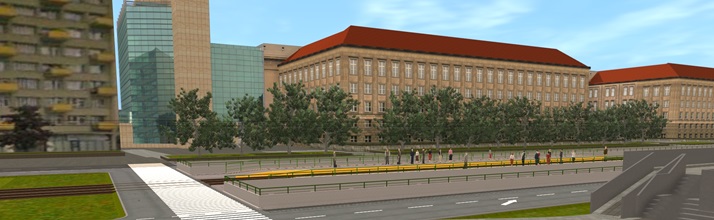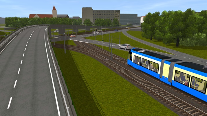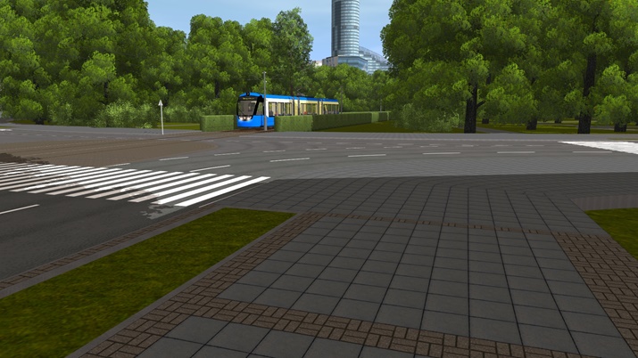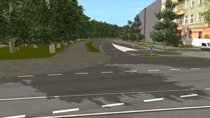 Ein Teil der Straßenbahnlinie "2" aber auch der Linie "10" zwischen "Biskupin" und "Katedra" konnte ich weitgehend fertigstellen. Die Gebäuden entlang der Gleisen sind texturiert oder nachgezeichnet. Das texturieren verläuft nicht ganz optimal, es fehlen mir die brauchbaren Fotos, da ich nicht Vorort bin, ist es nicht zu anschaffen. Wenn ich die Umgebung komplett nachzeichnen wolle, bräuchte ich ein zweites Leben um das Projekt fertig zu stellen. Neben den Gebäuden habe ich die Pflanzen, Verkehrszeichen, paar Menschen und wo es notwendig war auch Ampelanlagen, die sowohl den automatischen Straßenverkehr auch die Straßenbahnzüge steuern, eingebaut. Den Straßenverkehr habe ich mit modernen Fahrzeugen, die auch in Breslau zu erwarten sind, darunter auch einige polnische Autos, ausgestattet.