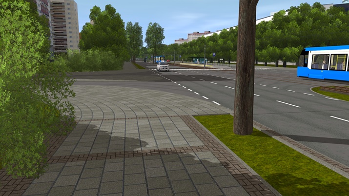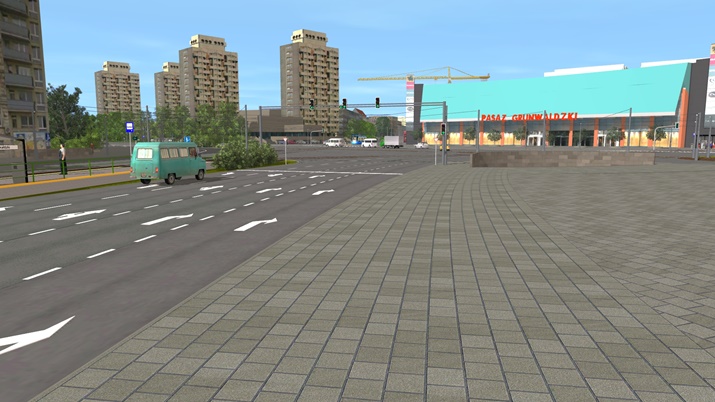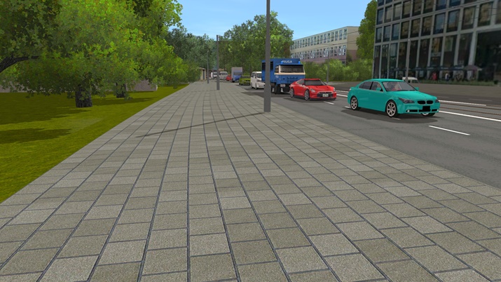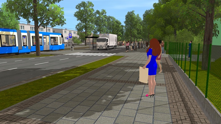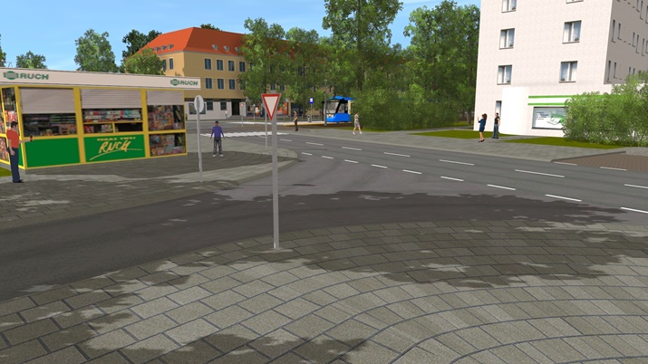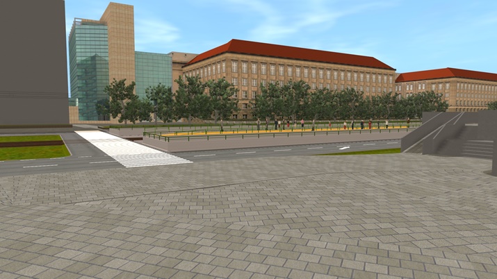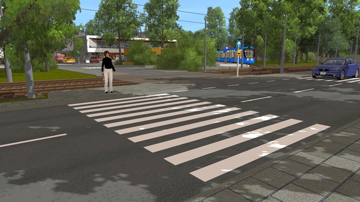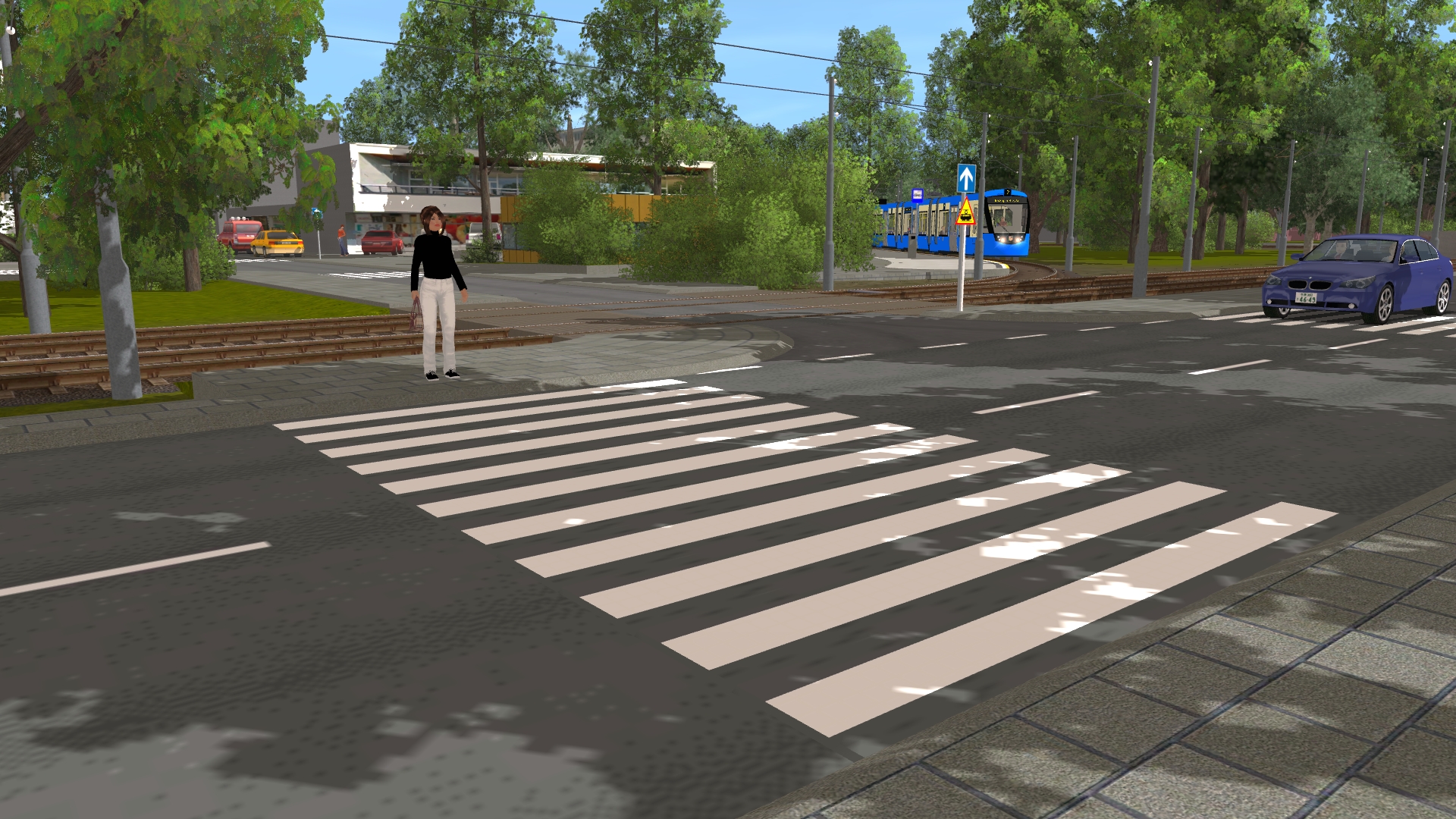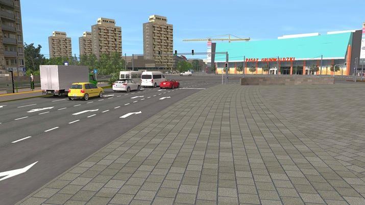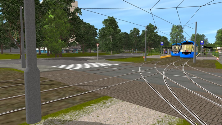 Ein Teil der Straßenbahnlinie "2" aber auch der Linie "10" zwischen "Biskupin" und "Katedra" konnte ich weitgehend fertigstellen. Die Gebäuden entlang der Gleisen sind texturiert oder nachgezeichnet. Das texturieren verläuft nicht ganz optimal, es fehlen mir die brauchbaren Fotos, da ich nicht Vorort bin, ist es nicht zu anschaffen. Wenn ich die Umgebung komplett nachzeichnen wolle, bräuchte ich ein zweites Leben um das Projekt fertig zu stellen. Neben den Gebäuden habe ich die Pflanzen, Verkehrszeichen, paar Menschen und wo es notwendig war auch Ampelanlagen, die sowohl den automatischen Straßenverkehr auch die Straßenbahnzüge steuern, eingebaut. Den Straßenverkehr habe ich mit modernen Fahrzeugen, die auch in Breslau zu erwarten sind, darunter auch einige polnische Autos, ausgestattet.