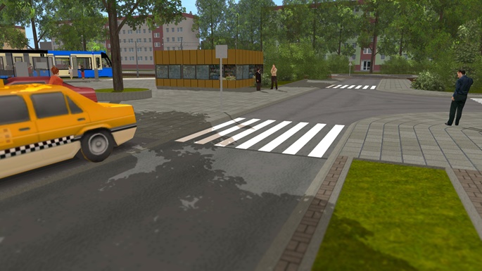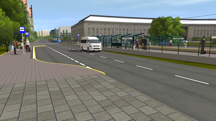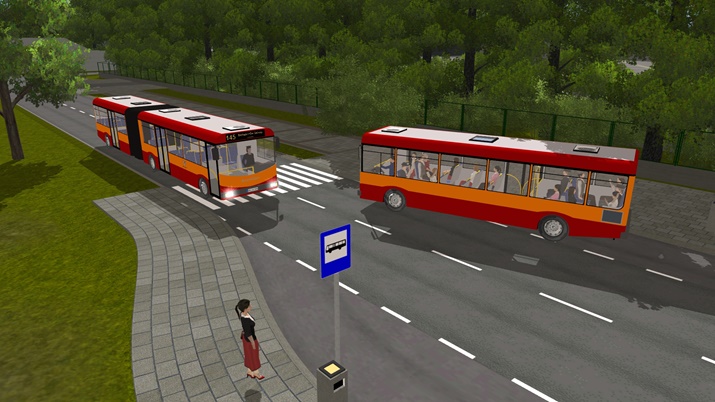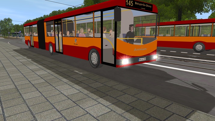 Ich habe gleich zwei Busse für die Strecke Breslau gezeichnet und gleich auf einem kleinen Abschnitt der Strecke getestet. Sie fahren erstaunlich gut. Der automatische Straßenverkehr muss leider abgeschaltet werden. Die Busse kollidieren stets mit den anderen Straßenfahrzeugen. Es hat keine Folgen für den Verlauf des Spiels, sieht aber nicht schön aus.