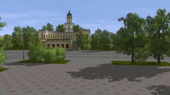 Jetzt werden alle Gebäuden entlang der Straßenbahn überarbeitet und texturiert, natürlich soweit es möglich ist. Bis jetzt habe ich festgestellt, dass es viel einfacher ist die Bauten nachzuzeichnen und nur geringfügig mit Fototexturen sie bekleben. Es fehlen mir gute Fototexturen.