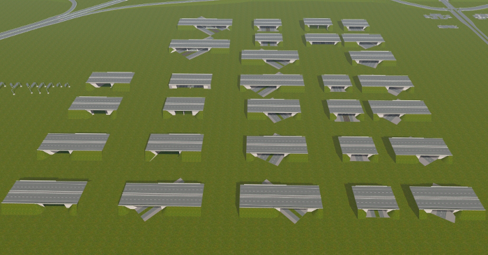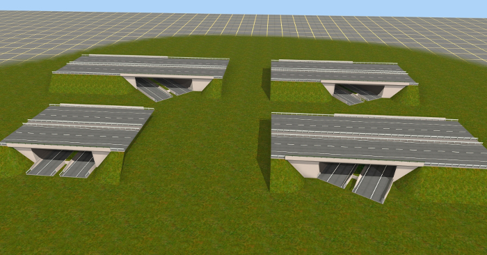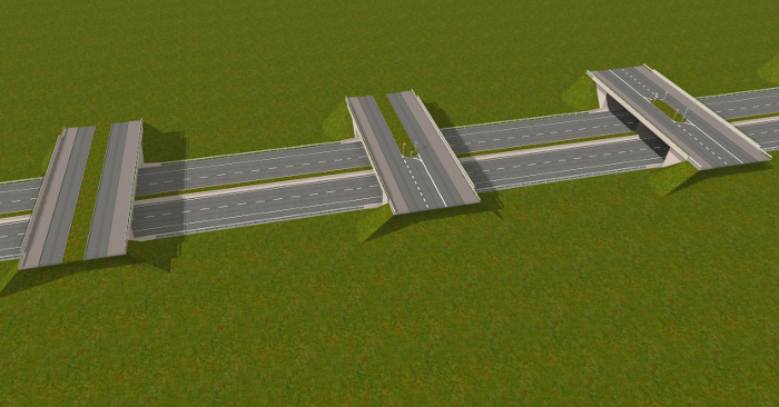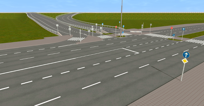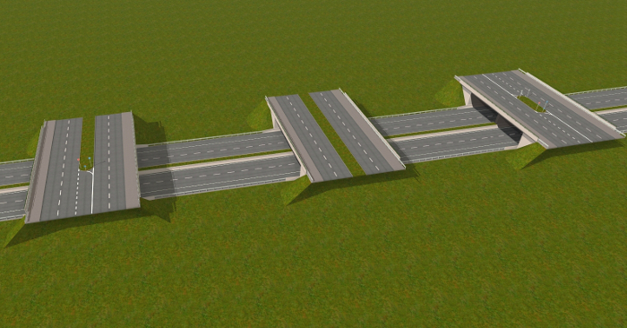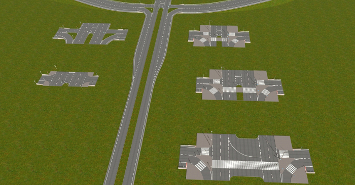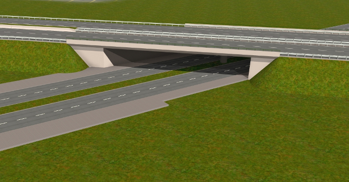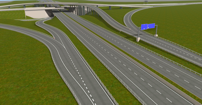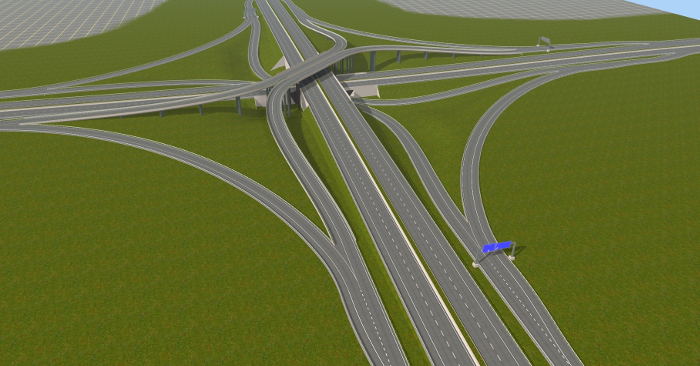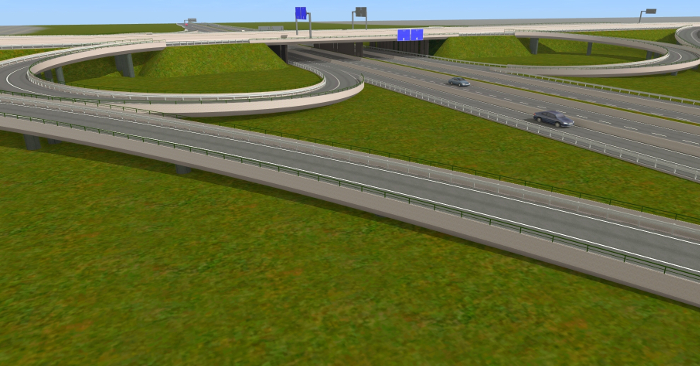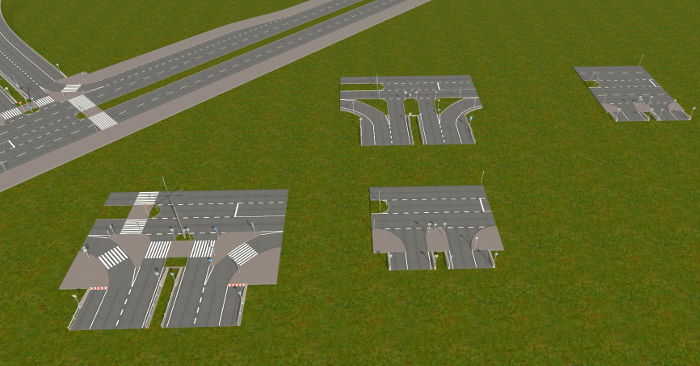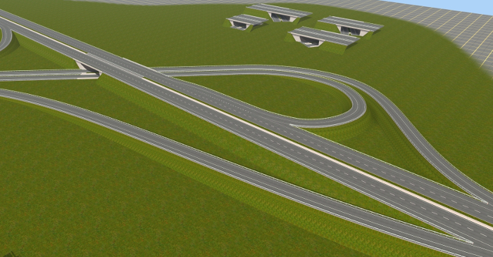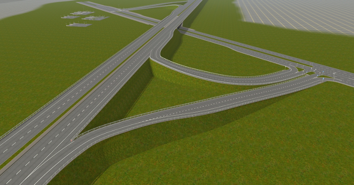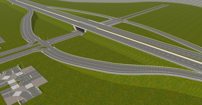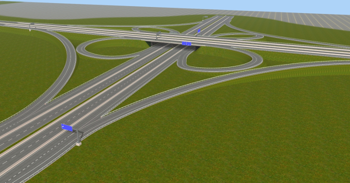 ... und mehrere Autobahnanschlussstellen, Aus- und Einfahrten, die mit AB-Unter- oder Überführungen verbunden sind. An die passenden Straßenkreuzungen habe ich auch gedacht.