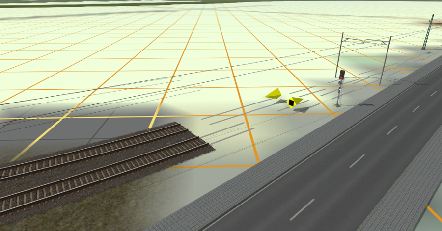 Auf dem zweiten und dem dritten Screenshot sieht man die Stellen wo ich vorhin Gleise verlegt habe. Nun waren sie gelöscht. Zumindest sind die Glese mit hellgrauen Streifen ersetzt worden. Andere Objekte verschwanden spurlos.