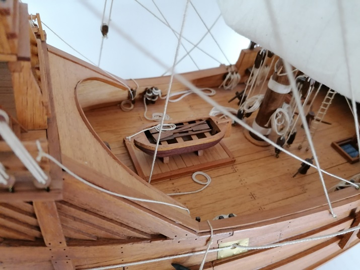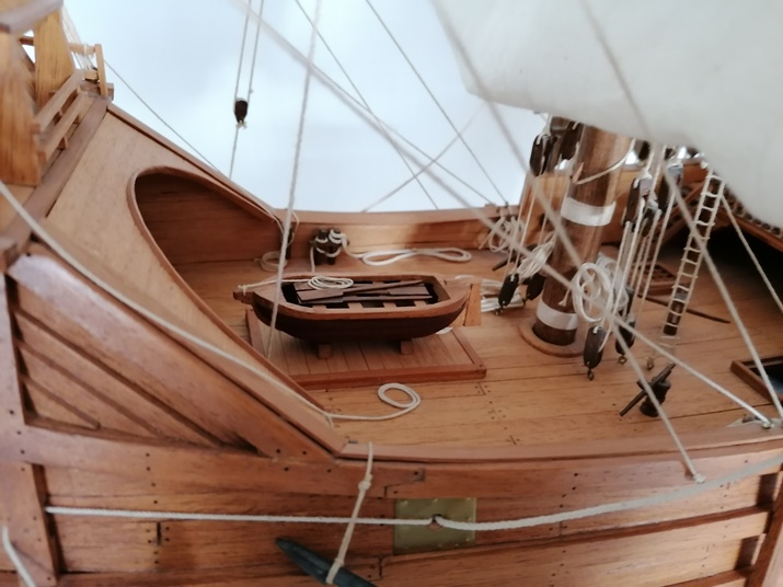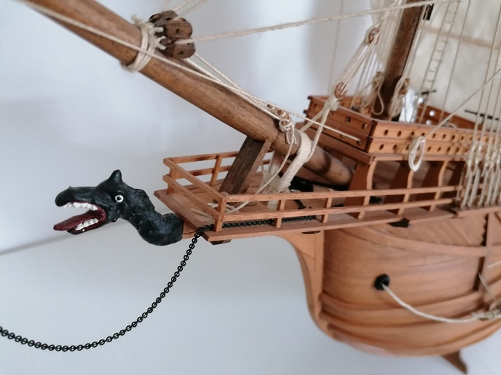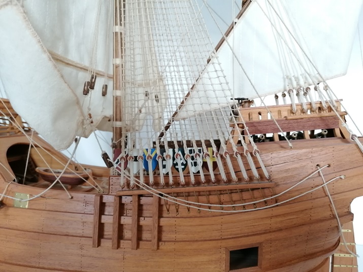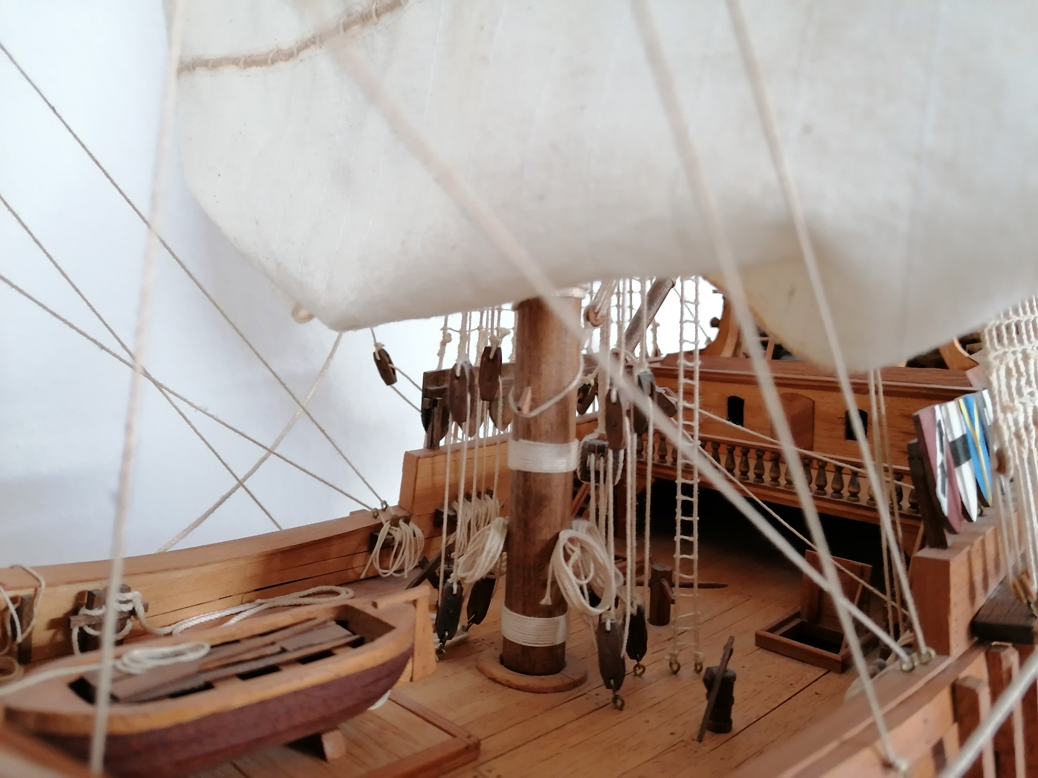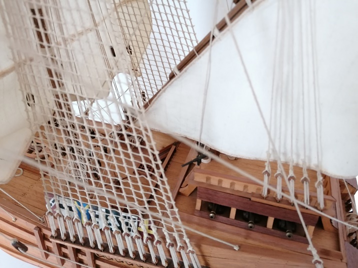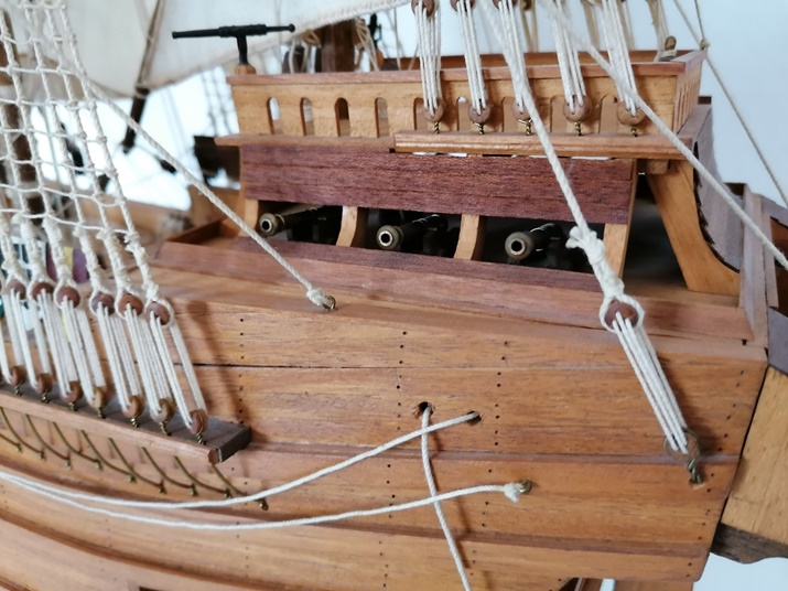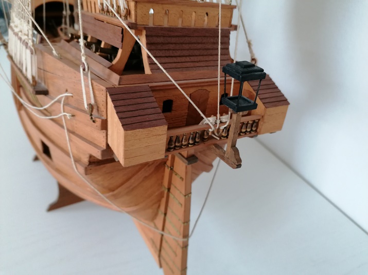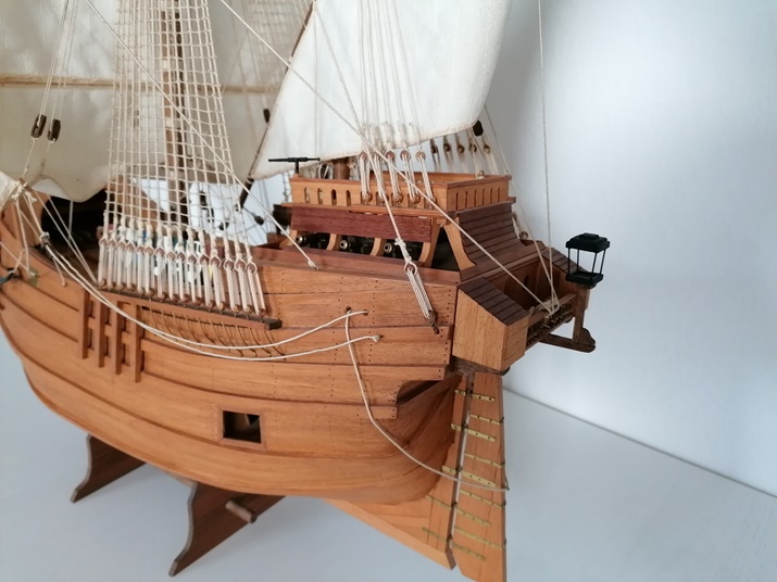 Im Jahr 1993 bekam ich einen sehr alten Plan zur Modellerrichtung von einer Karacke. Die Karacke war ein Segelschiffstyp des ausgehenden Mittelalters und der beginnenden Neuzeit. Der Schiffstyp tauchte erstmals in der ersten Hälfte des 14ten Jahrhunderts in Genua als carraca auf. Eigentlich aufgrund seiner Größe, wäre das das perfekte Schiff für Kolumbus und seine Entdeckungsreise gewesen. Ich verfüge über keine geeignete Werkstatt für solche Arbeiten, baute das Schiff in meiner damaligen Wohnung und das werde ich nie wieder auf diese Art wiederholen. Es hat gute sechs Monate gedauert bis es fertig war. Bis ich eine angemessene Werkstatt dafür habe, werde ich keine weiteren Modelle bauen.