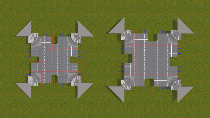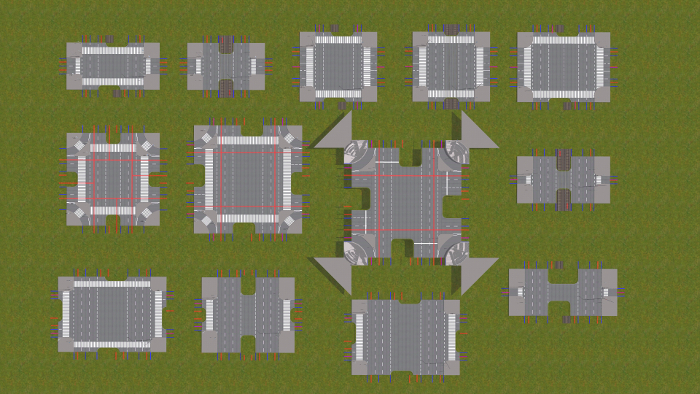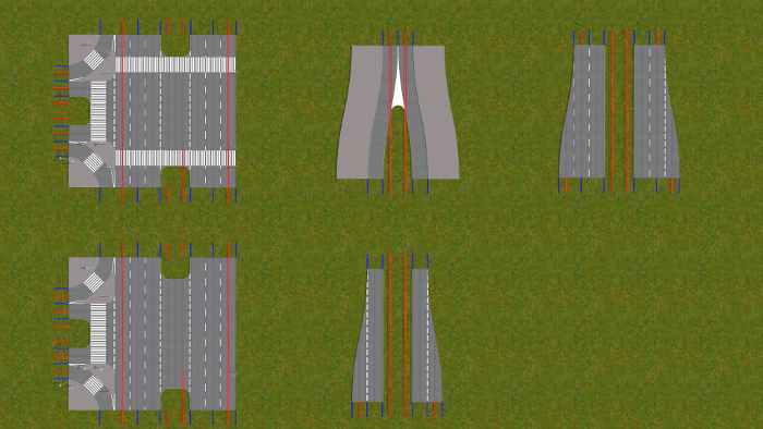 W zasadzie nie różnią się te skrzyżowania niczym od innych, oczywiście są większe, bo przechodzą przez nie tory tramwajowe. W obecnym stanie rzeczy jest bardzo trudno zbudować zawieszenie trakcji elektrycznej. Nie wygląda to prawdziwie. Pracuję nad tym, może przyjdzie mi jeszcze coś innego do głowy...