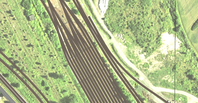 Za pomocą programu QGis korzystając z servisu WMS pociąłem plan Wrocławia i Ortfoto mapę na kwadraty 500x500 m. Z tych kwadratów buduję obiekty i wstawiam je do Trainza. Na takiej podkładce mogę bardzo dokładnie układać tory, ulice, budynki a nawet drzewa. Same podkładki umieszczam w innym planie (Layer), tak że mogę je łatwo schować albo wykasować.
