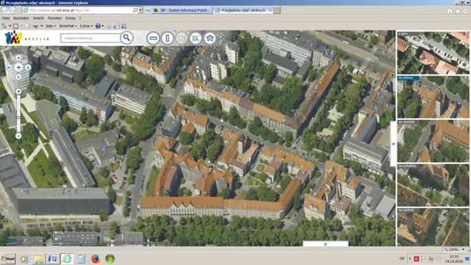 Zupełnie przypadkowo, w roku 2014 wszedłem na stronę geoportal Wrocław i serce mi się uśmiechnęło. Mapy, mapy i mapy... To trzeba zobaczyć... Wszystko można użyć do budowy modelu, no prawie wszystko. Mapa trójwymiarowa Wrocławia byłaby idealna do budowy mojego modelu, ale nie widzę żadnej możliwości przetranportowanie jej do Trainza. Ale inne Mapy, kompletny WMS servis i mapy wysokościowe to nieoceniona pomoc w budowie makiety Wrocławia. W 2016 roku doszła do tego totalnie odjazdowa mapa ukośna Wrocławia., wszystkie budynki miasta można oglądać z czterech stron świata i z góry. Rozdzielczość tej mapy nie jest co prawda doskonała, ale w zupełności wystarczająca by rzutem z ekranu okleić trójwymiarowe siatki budynków.