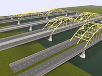 Przy niektórych, zwłaszcza nowszych mostach, zrezygnowałem kompletnie z budowy segmentowej i używam tylko klasycznych złączek do ulic. Automatyczny ruch kołowy odbywa się przy pomocy oddzielnie wbudowanych pasów ruchu.