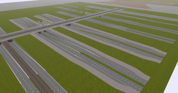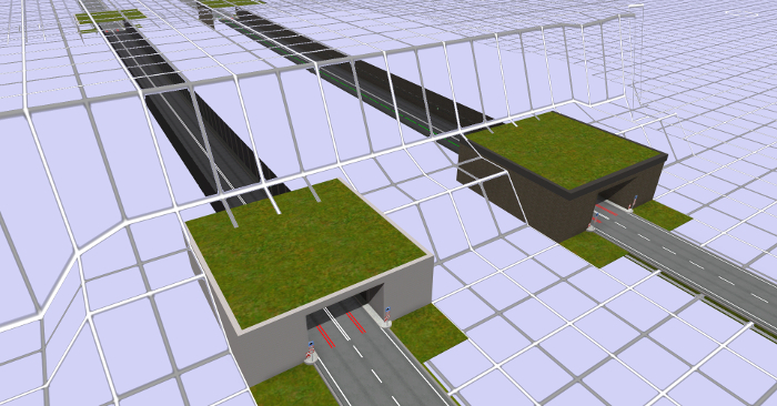 Es ist ein Puzzel Spiel. Mehrere passende Teile werden zusammengesteckt, die Oberfläche wird mit „Dighole“ entsprechend durchgebrochen und fertig ist die Unterführung. Eine perfekte Abbildung der Natur wird es nicht geben. Mit dieser Vielfalt von Lösungen können allerdings ganz viele verschiede Unterführungen nachgebaut werden. Wie immer habe ich einige Teile mit den passenden (DE) Verkehrszeichen versehen. Als ich bei den Unterführungen war, programmierte ich eine Tiefgarage gleich mit.