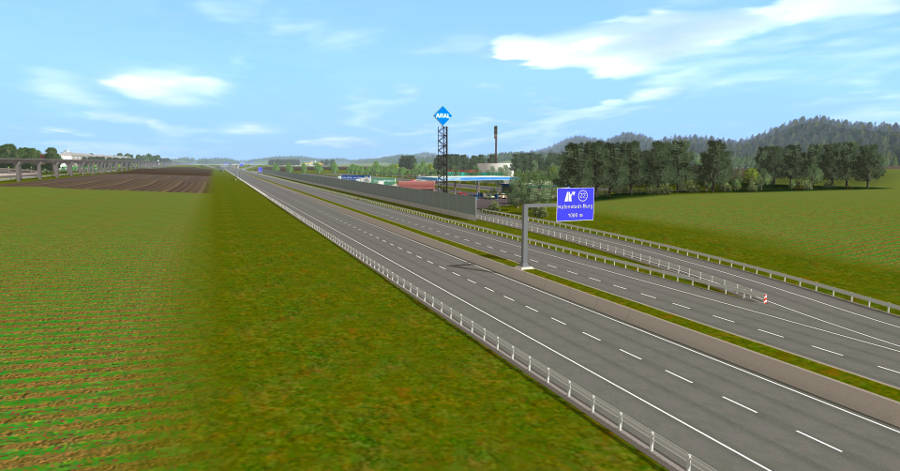 Auf der Strecke kreuzen sich die Wege der unterschiedlichen Transportmittel auf unterschiedliche Art und Weise. Ich baute Signale oder Ampelanlagen ein um den Verkehr zu steuern. Nicht alles funktioniert hier so, wie man es gerne möchte. Ich habe echt keine Ahnung, ob das an dem Spiel oder an den einzelnen unter Umständen fehlerhaft programmierten Fahrbefehlen hängt. Das TANE hatte besonders massive Anlaufprobleme, die bis heute nicht komplett beseitigt sind. So hatte ich auch auf meiner AWF-Strecke enorm große Kompatibilitätsprobleme. Es hat fast ein halbes Jahr gedauert, bis ich diese behoben habe. In einer einfachen Entfernung ist die Strecke inzwischen ca. 60 km lang. Wenn man die Länge der Gleise und der befahrbaren Straßen zusammen addiert müsste das Zehnfache rauskommen, wenn nicht mehr. Die bebaute Fläche beträgt über 260 km², davon ein Drittel als dichte Stadt. Wenn das Spiel einen Tick leistungsstärker funktioniert hätte, könnte ich die Strecke mal zu Ende einrichten.