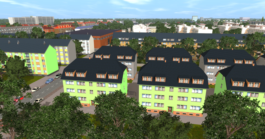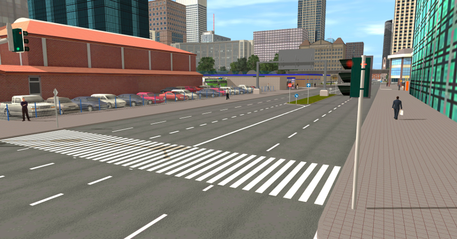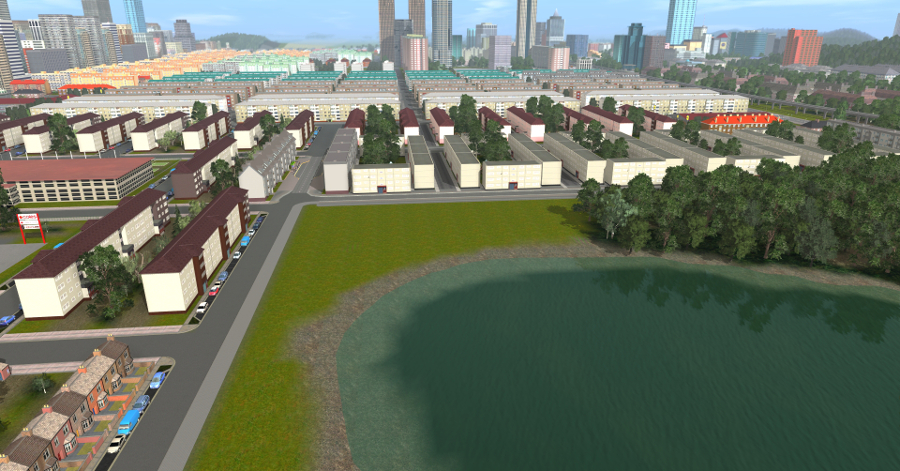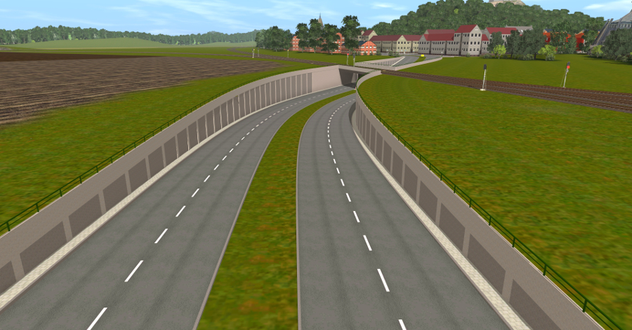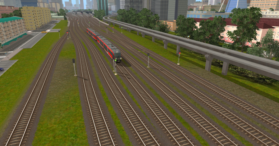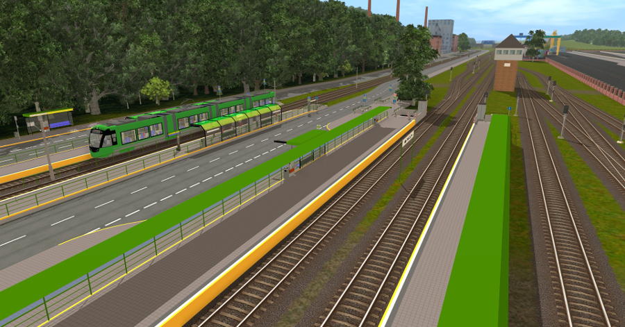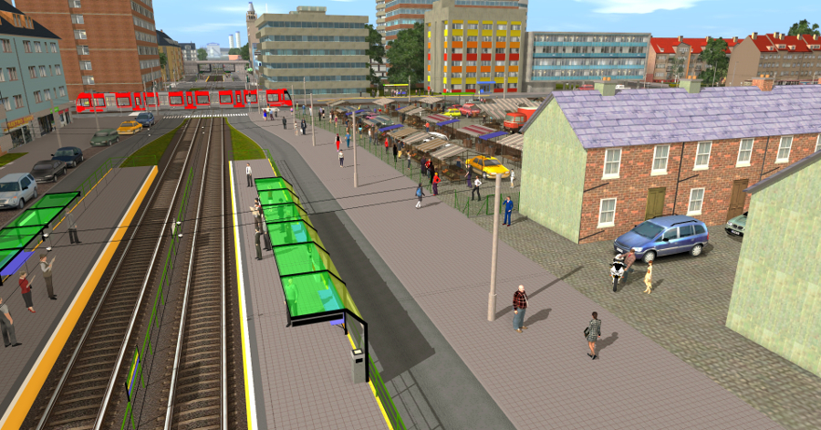 Das Problem liegt daran, dass alle Fahrten als automatisch programmiert sind und ich dabei an die Systemgrenze gestoßen bin. Nachdem ich die 65 Fahrer mit Fahrbefehlen ausgestattet habe, führt das Spiel einige dieser Befehle nicht mehr aus. Schade, mir fehlen nur noch etwa 30 Buslinien und ein paar U-Bahnzüge. Die Landschaft bis auf wenige Ausnahmen könnte schon so bleiben, es sieht gar nicht so schlecht aus. Schauen Sie sich einfach kommentarlos die Screenshots von der Strecke an: